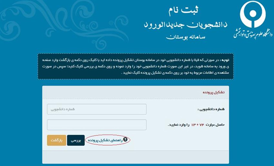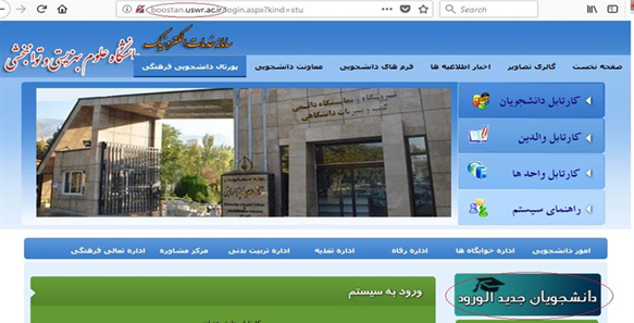 ۱- ورود به سایت student.uswr.ac.ir جهت ثبت نام در سامانه سما و در نهایت دریافت شماره دانشجویی برای ورود به سامانه بوستان .