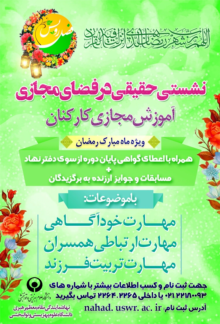 آموزش مجازی مهارت های زندگی ویژه کارکنان دانشگاه و مراکز تابع در ماه رمضان، در قالب " طرح رویش " برگزار می شود.