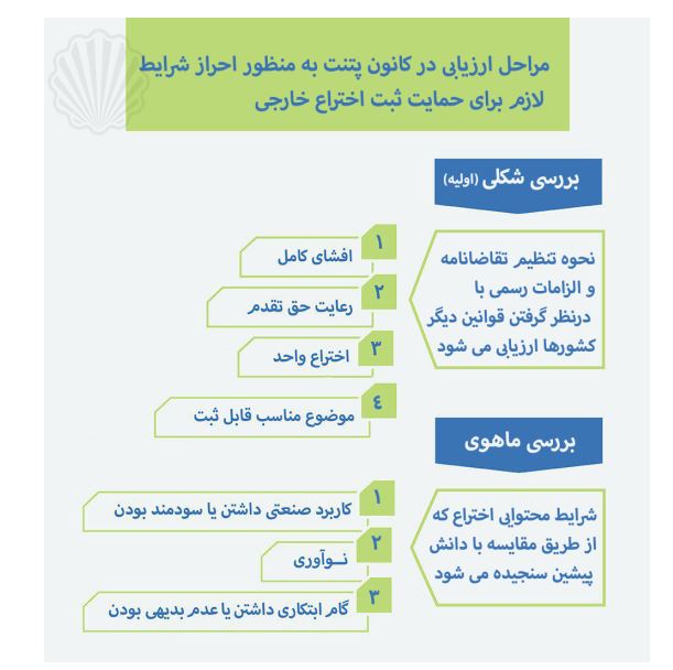 مراحل ارزیابی ثبت اختراع خارجی  را می‌توانید در شکل زیر مشاهده نمایید: