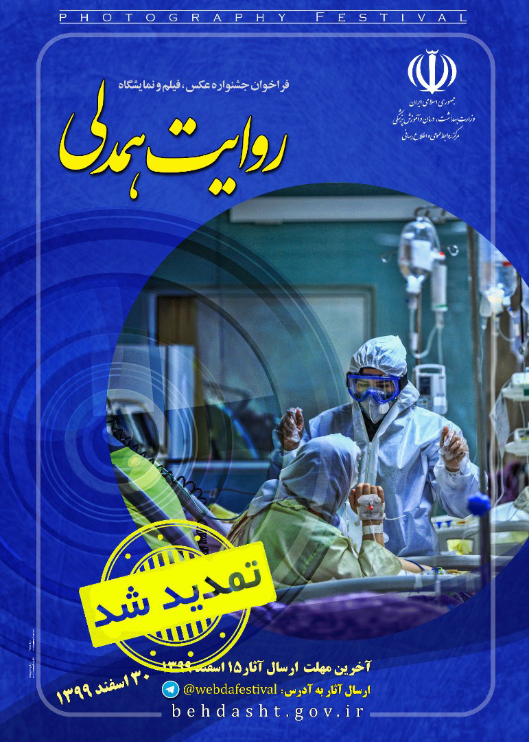 مرکز روابط عمومی و اطلاع رسانی وزارت بهداشت، درمان و آموزش پزشکی طی اطلاعیه ای، اعلام کرد که مهلت فراخوان جشنواره عکس، فیلم و نمایشگاه «روایت همدلی» ویژه همه بخش ها، سازمان ها، دانشکده ها و مراکز تابعه وزارت بهداشت، تمدید شد.