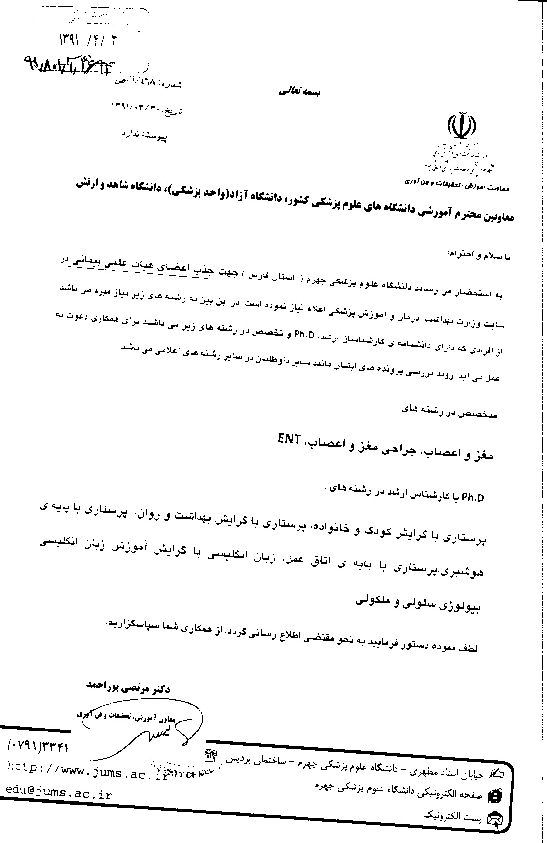 اخبار > جذب عضو هیات علمی پیمانی