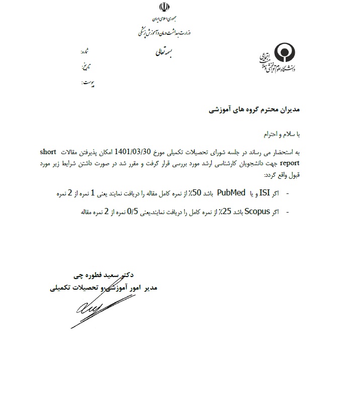 اخبار > شرط پذیرش مقالات short report برای دانشجویان ارشد