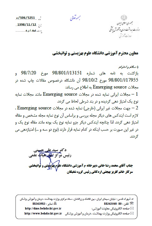 اخبار > چگونگي امكان پذيرش مقالات Emerging source جهت دانشجويان مقطع دكتري