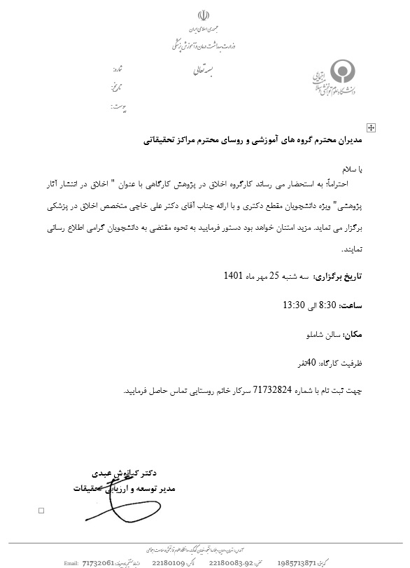 اطلاعیه حضور و غیاب دانشجویان دکترا