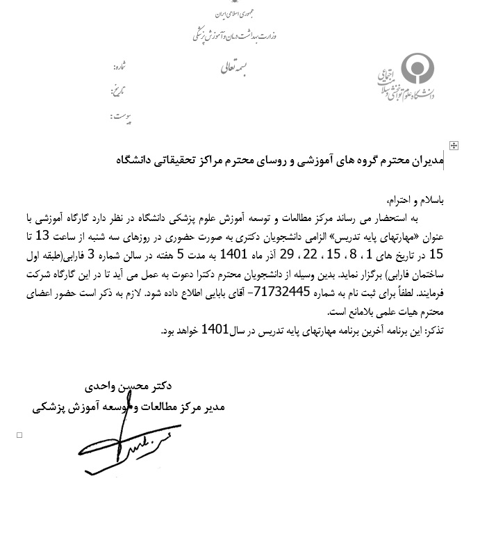 مهم: قابل توجه کلیه دانشجویان دکترا- کارگاه مهارتهای تدریس