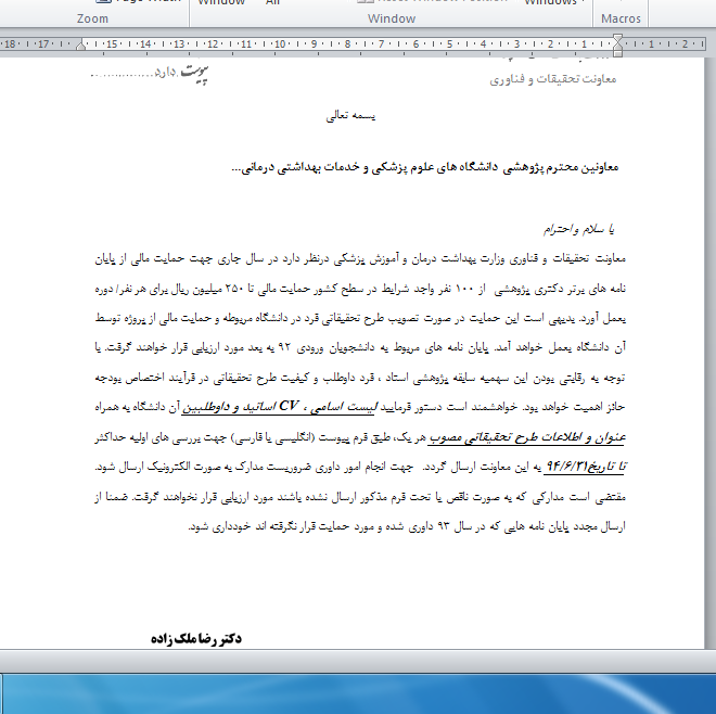 معاونت تحقیقات و فن آوری اطلاعات :حمایت مالی از پایان نامه های برتر دکتری پژوهشی