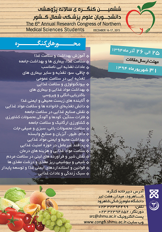 کمیته تحقیقات دانشجویی:ششمین کنگره پژوهشی دانشجویان علوم پزشکی شمال کشور با محوریت تخصصی "ایمنی غذا از مزرعه تا بشقاب"