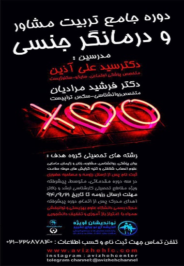 دومین دوره جامع تربیت مشاور و درمانگر جنسی در سه مرحله مقدماتی ، متوسطه و پیشرفته ، توسط اساتید بنام دکتر "سید علی آذین " (متخصص پزشکی اجتماعی، سایکو سکسلوژیست) و دکتر " فرشید مرادیان " (متخصص روانشناسی، سکس تراپیست) اجرا خواهد شد.
