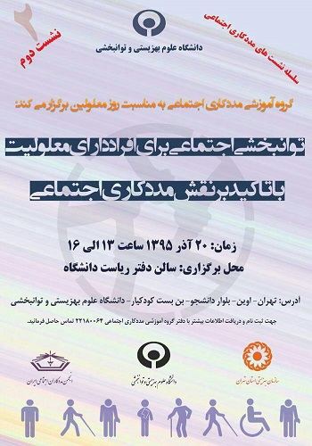 اخبار > نشست " توانبخشی اجتماعی برای افراد دارای معلولیت با تاکید بر نقش مددکاری اجتماعی"، روز شنبه برگزار می شود