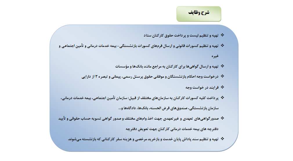 شرح وظایف واحد بازنشستگی